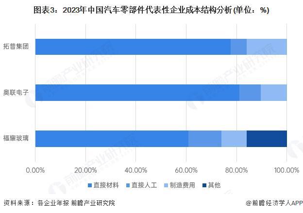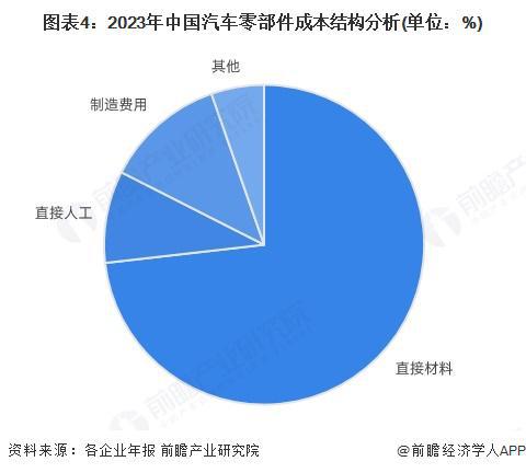 中国汽车零部件行业的成本结构主要由直接材料、直接人工和制造费用组成,其中直接材料占据较大比例,显示出原材料采购在生产中的重要性。直接人工和制造费用的占比较小,表明企业在劳动力和生产管理方面的成本相对可控。整体上,材料成本仍是主要驱动因素,行业企业需关注原材料价格波动及其对成本结构的影响,同时优化人工和制造费用的管理,以提升成本效益。